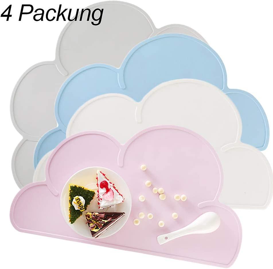 Children Placemat Washable Silicone Mats 4 Pieces Placemat Cloud Shape Washable Non-slip Silicone Portable Waterproof