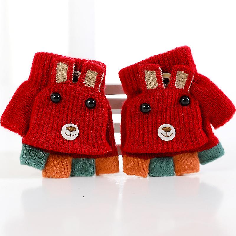 Winter Children Clamshell Warm Knit Baby Fingertip Bag Dual-use Cartoon Cute Thickened Gloves For Women