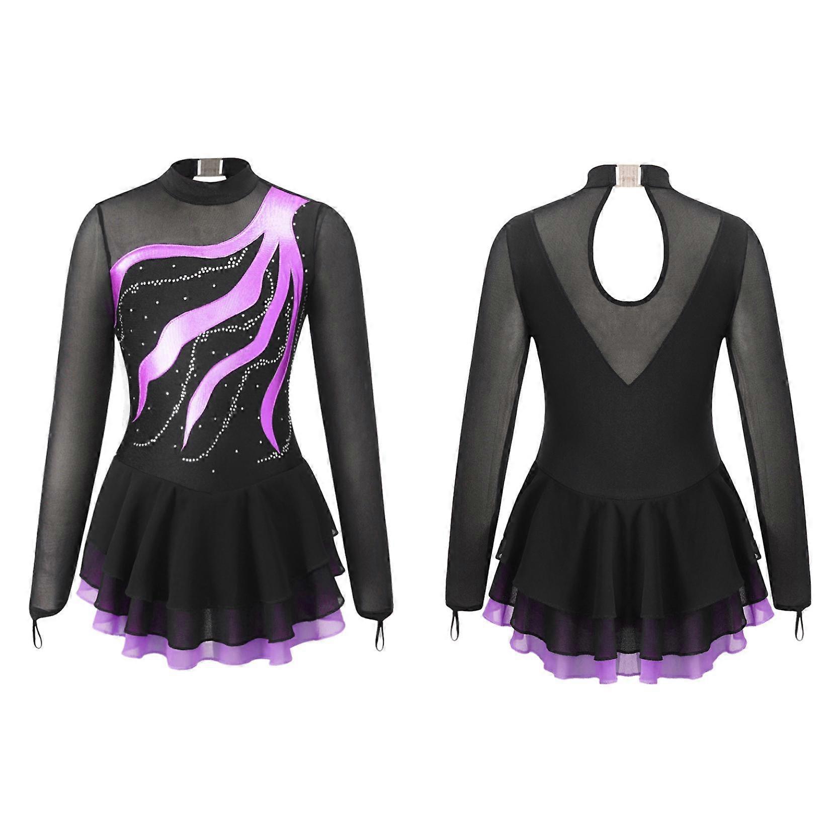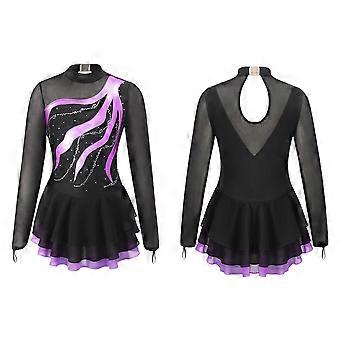 Child Girls Ballet Gymnastics Leotard Rhinestone Figure Ice Skating Dress Ballroom Dance Costume Training Performance Clothing