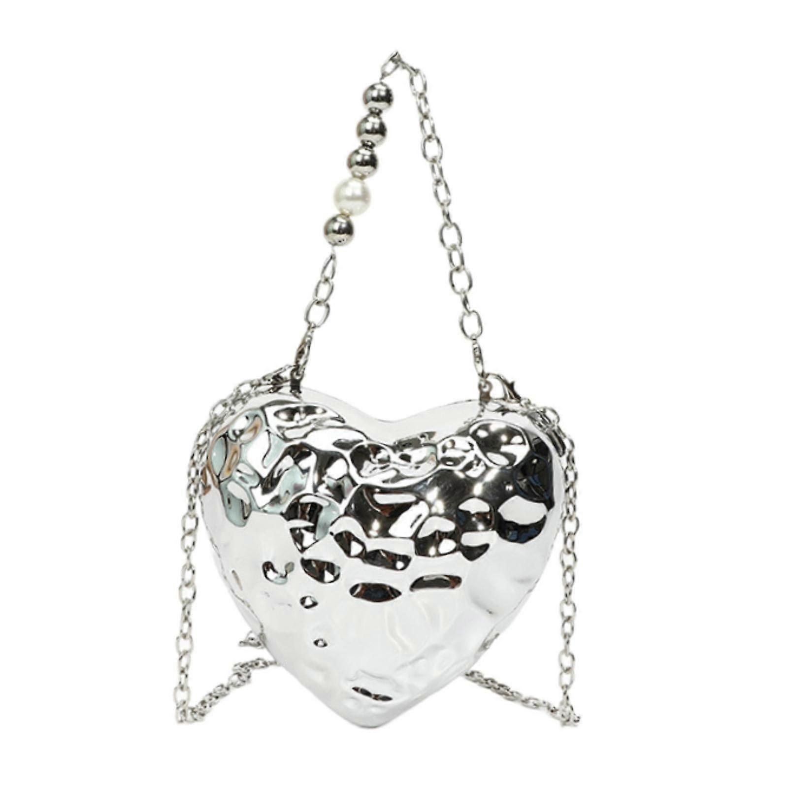 Heart Shape Satchel for Women Purse Shoulder Bag for Outdoor Party Daily Use Silver