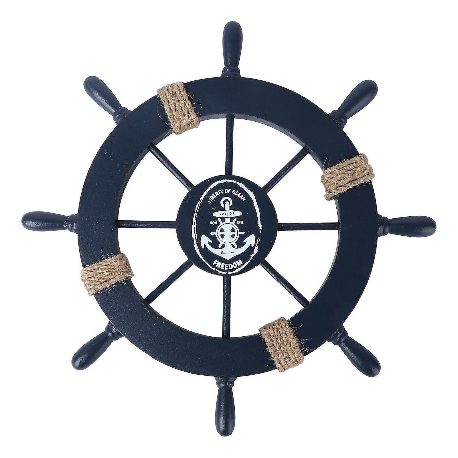 Mediterranean Nautical Wooden Boat Ship Wheel Helm Home Wall Party Decoration (Dark Blue)