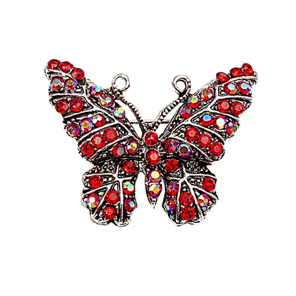 Beautiful Butterfly Brooch Rhinestone Dark Red Retro Style Lady Clothing Accessory 3.2x2.5cm 1Set