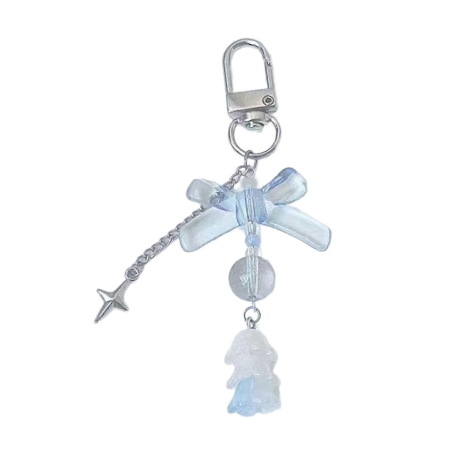 Lovely Bowknot Flower Bead Keychain Pendant Fashion Cute Hanging Ornament Keyring Backpack Decoration Charm Jewelry