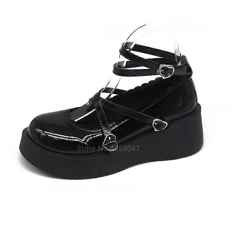 Japanese Lolita Shoes Mary Jane Pu Leather Jk Love Girl Student Kawaii Sweet Round Head Waterproof Black Shoes Anime Cosplay