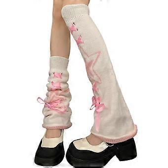 Japanese Sweet Lace Up Bows Leg Sleeve Aesthetic Butterfly Star Knit Leg Covers for Women Flared Leg Warmers Streetwear