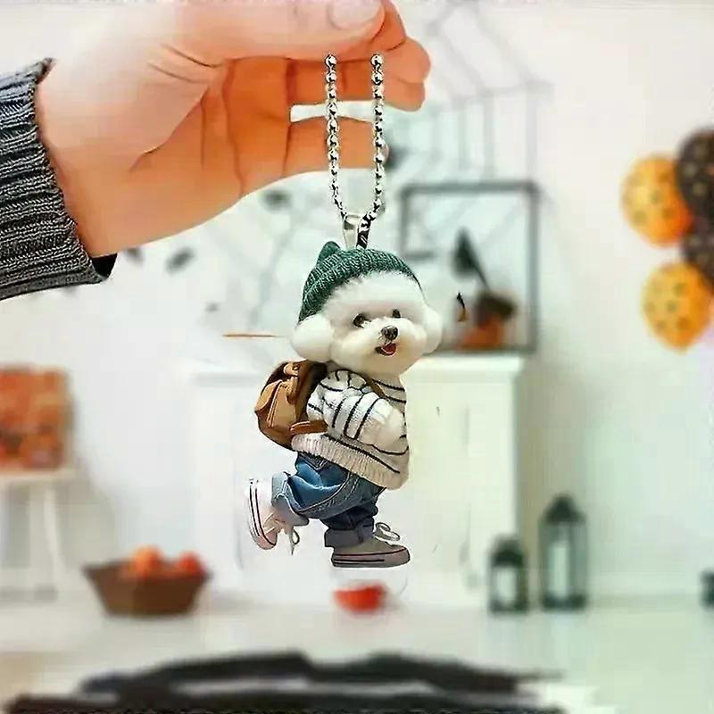 Creative Puppy Man Backpack Rearview Mirrors Pendant Car Hanging Ornaments Car Decoration Accessories Gifts For Women Men
