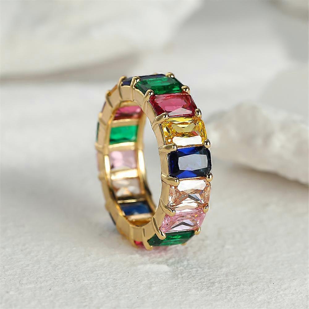 Creative Geometric Square Rainbow Zirconia Rings Women's Engagement Wedding Promise Ring Jewelry