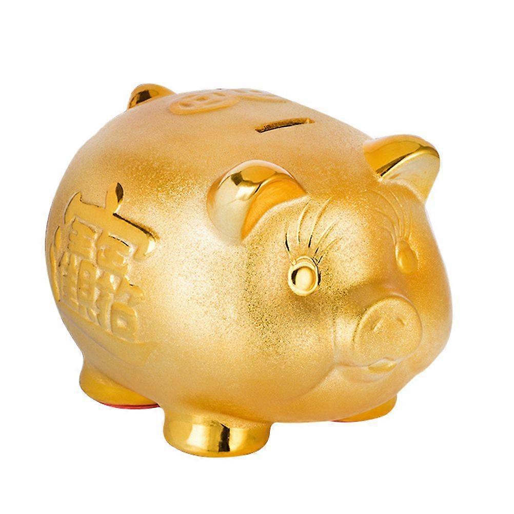 Creative Golden Piggy Bank Coin Bank Fortune Golden Pig Shaped Cartoon Money Holder Saving Pot Money Box for Birthday Present New Year's Gift Parlor D
