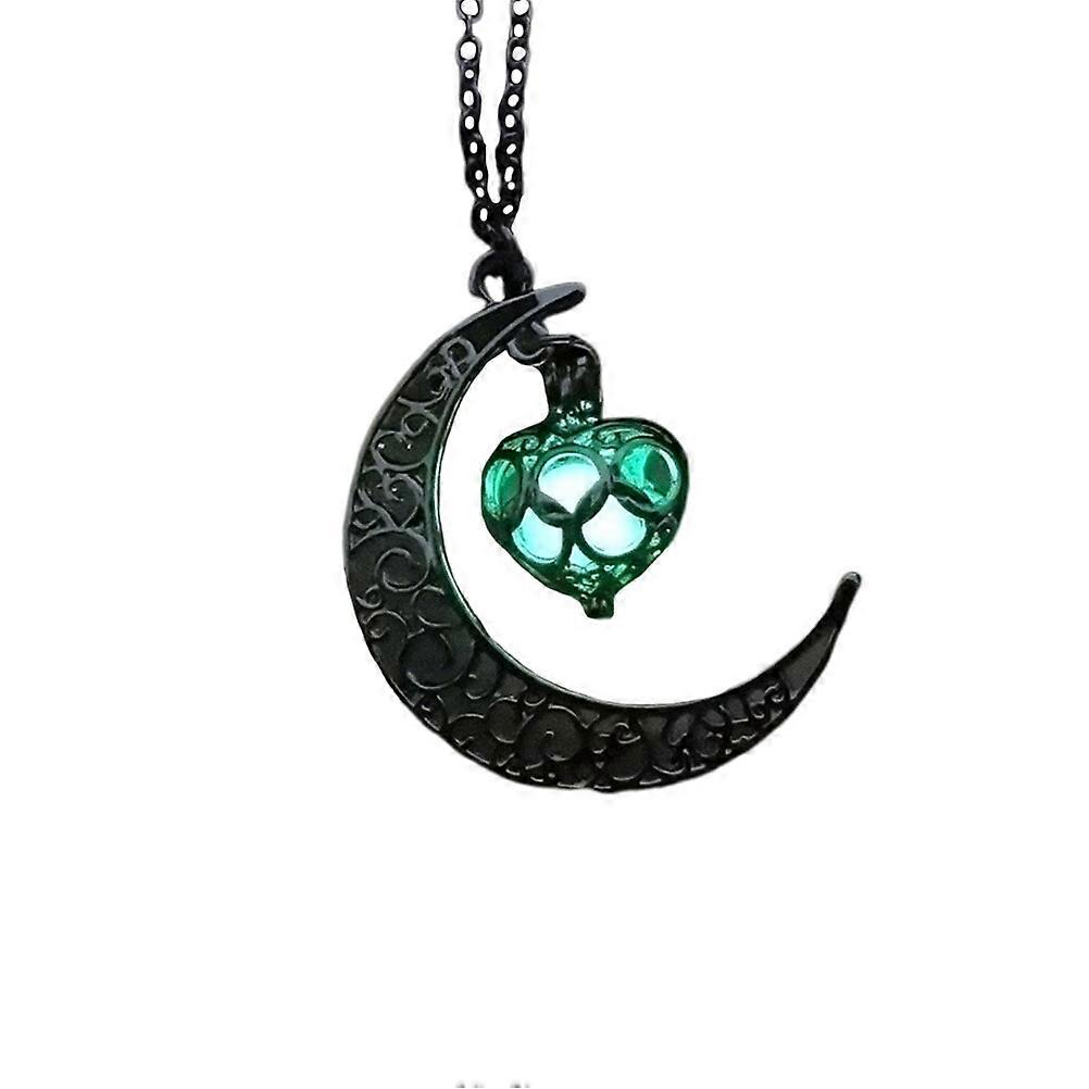 Creative Hollow Moon Shape Necklace Luminous Pendant Jewelry Fashion Necklace Pendant Charm Neck Decor for Women Girls (Green)