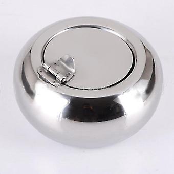 Creative Stainless Steel Drum Shape Lid Ashtray With Lid Car Living Room Office Ashtray Cigarette Cigar Non-smoke Ashtray(silver)