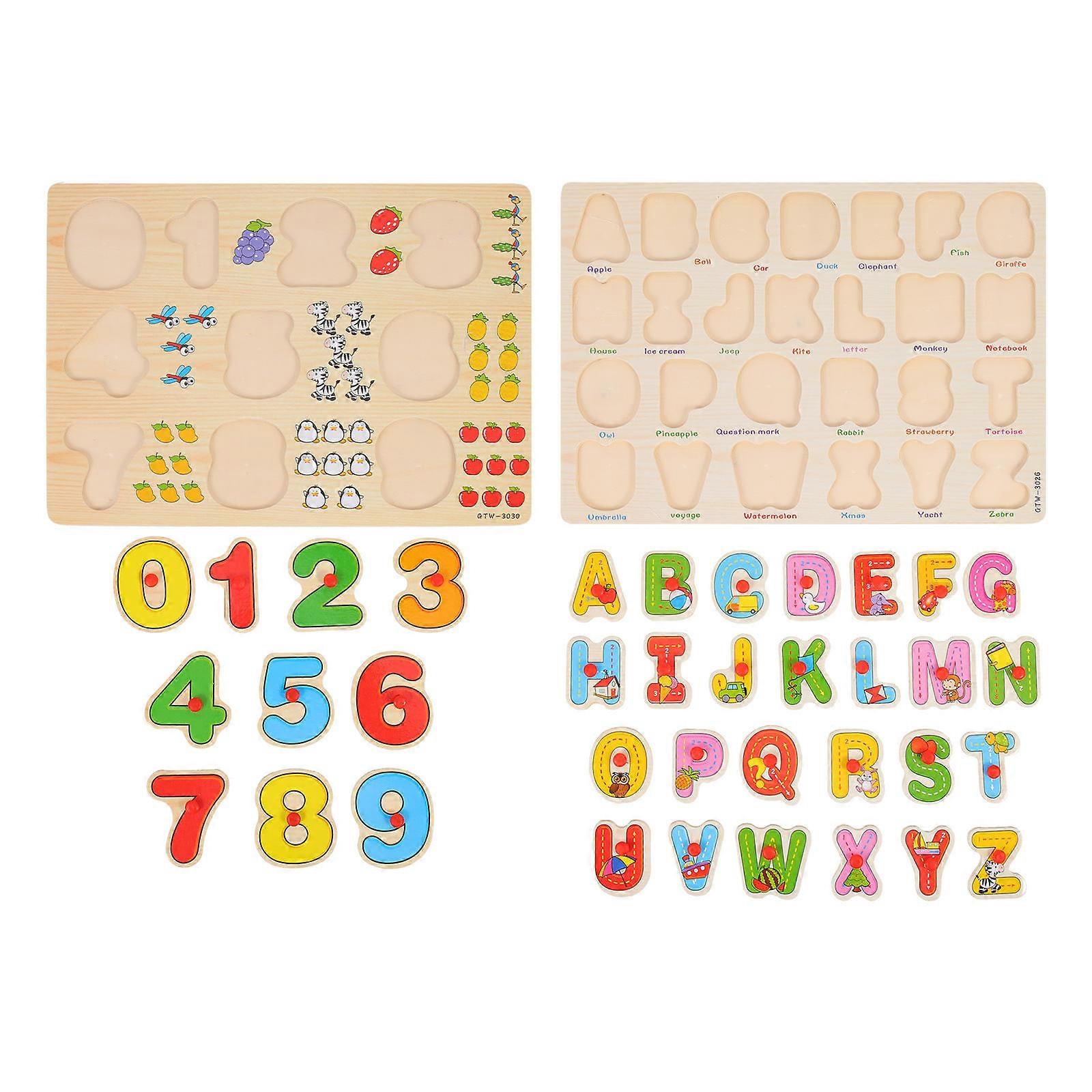 Creative Toddler Puzzle Playthings Wooden Number Puzzle Toys Assorted Color For Brain Development 2 Sets