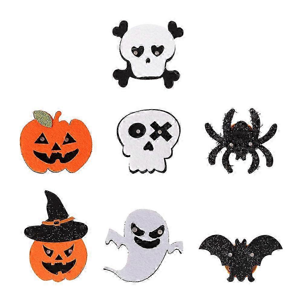 Creative 7Pcs Halloween Brooches Glowing Badges For Children And Adults Decorative Pin-Style Design With Skull Shape
