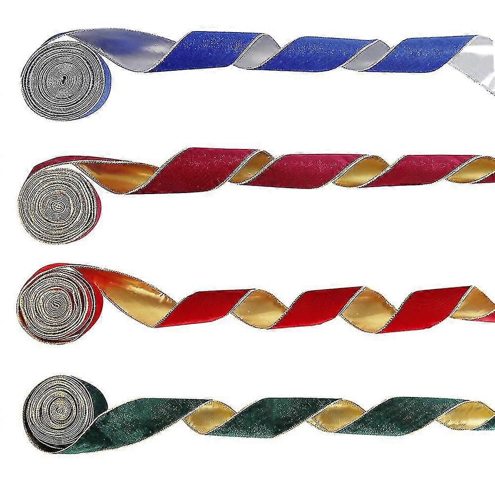 Green Red Blue Flocked Christmas Ribbon Christmas