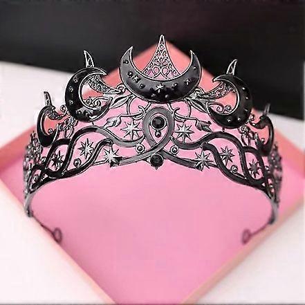 Moon and Star Bridal Crown Crystal Rhinestone Wedding Tiara Bride Headpiece for Halloween Cosplay Party and Stage Performance