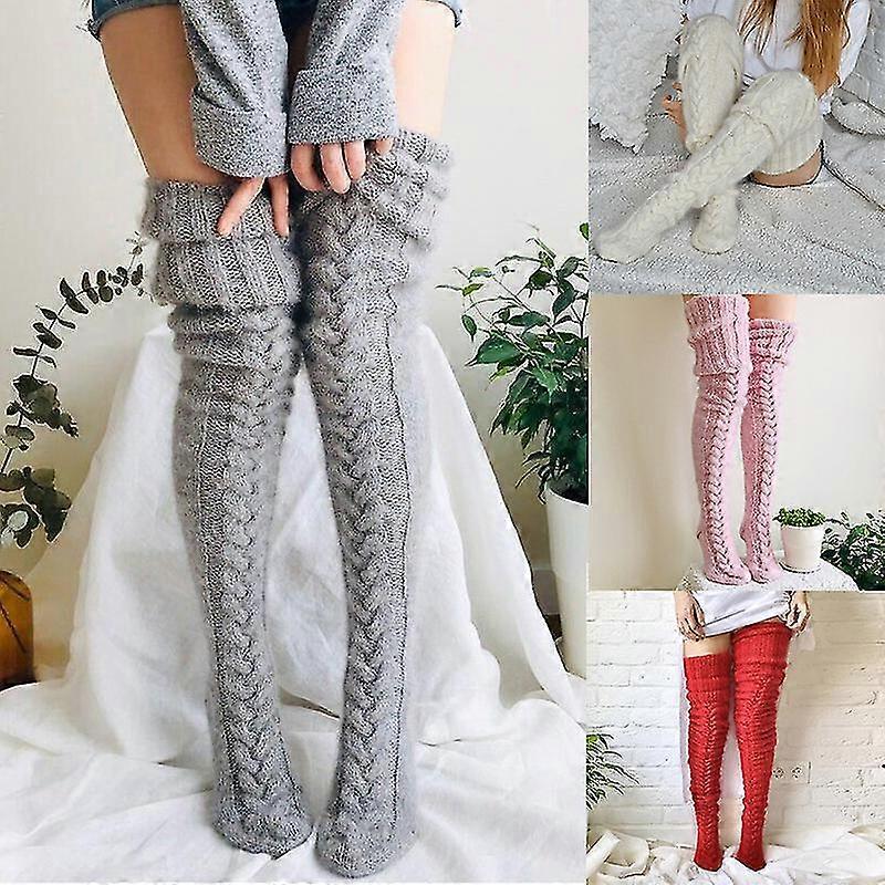 Mohair Cable Knit Stockings Women Winter Leggings Warm Grey Pink Over Knee Socks Ladies Home Thick Stockings 2023 New