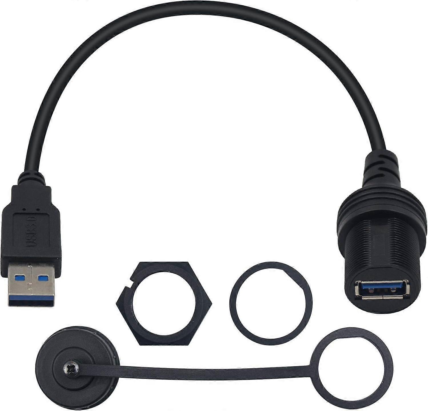 USB flush mount cable, round single port USB 3.0 panel flush mount cable with clasp, for car truck boat motorbike dashboard 30 cm / 12 in
