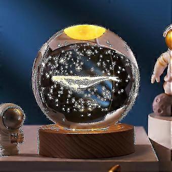 כדור בדולח 3d כוכב הלכת עם בסיס עץ, 3d קריסטל הוביל אור לילה, קישוט כדור קריסטל גלקסיה החלל עבור הבית-jie