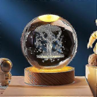 כדור בדולח 3d כוכב הלכת עם בסיס עץ, 3d קריסטל הוביל אור לילה, קישוט כדור קריסטל גלקסיה החלל עבור הבית xinhan