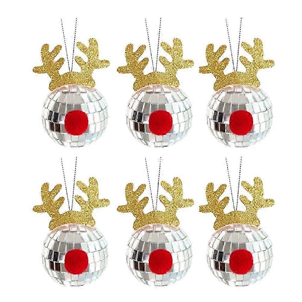 UOYOTT Silver Mirror Disco Ball W/ Santa's Hat Hanging Pendant Christmas Party Ornamen≮ K5R2