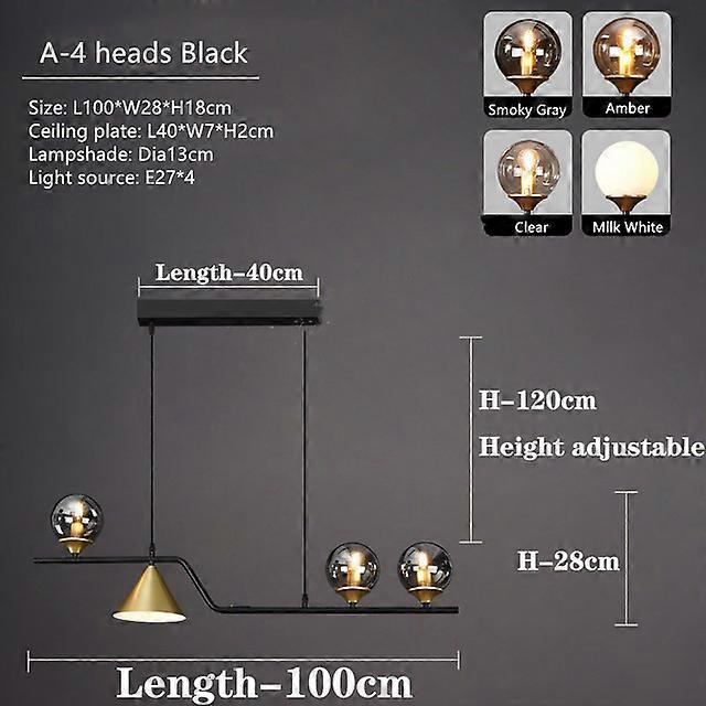 Glass Ball LED Chandelier For Dining Living Table Room Pendant Lamp Modern Home Decor Interior Ceiling Light Soot Glass