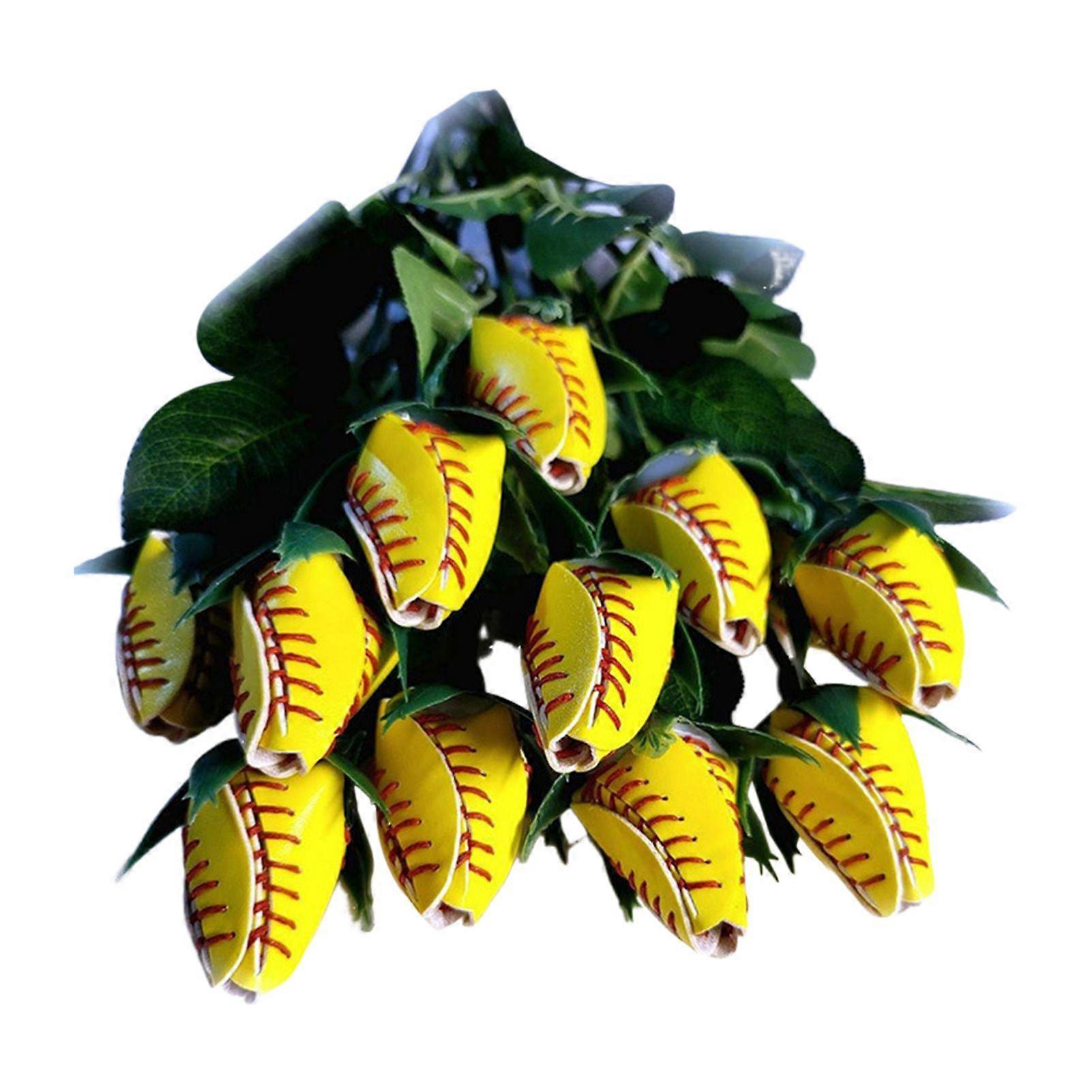 Sports Ball Rose Faux Leather Baseball Flower Softball Basketball Volleyball Soccer Artificial Flower Gift for Ball Sports Enthusiasts