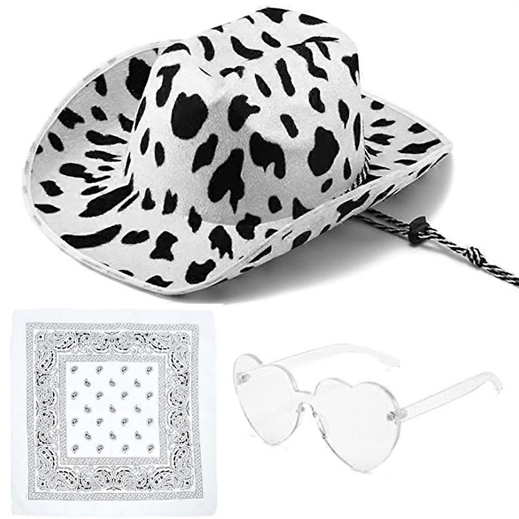 Cowboy Hats Cow Print Summer Sunhat Western Cowgirl Hat and Bandana Sunglasses