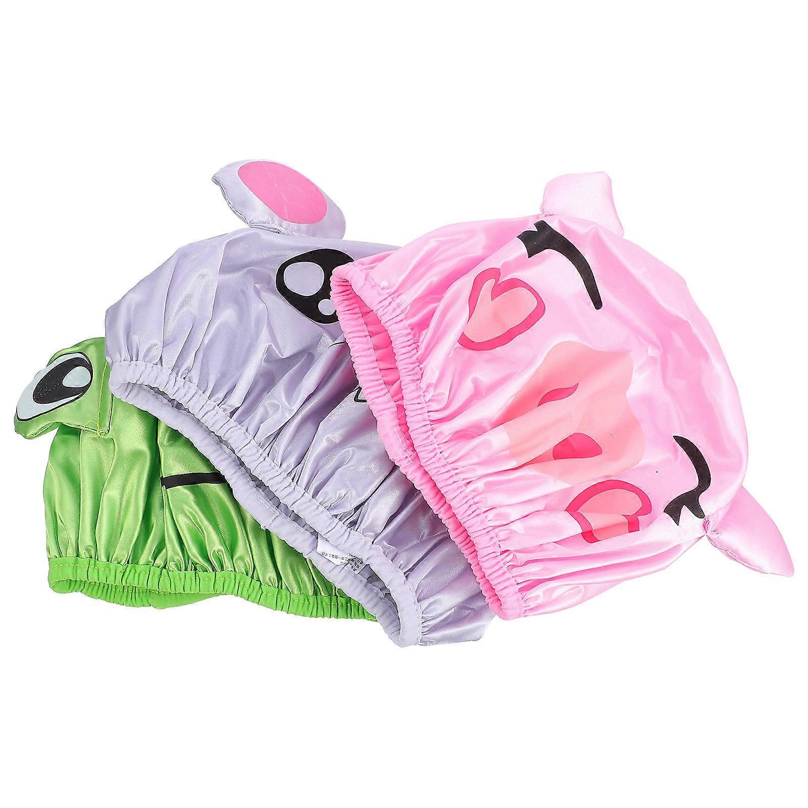 Elastic Band Shower Caps Thicken Bath Cap For Kids Bathing Grey 3Pcs