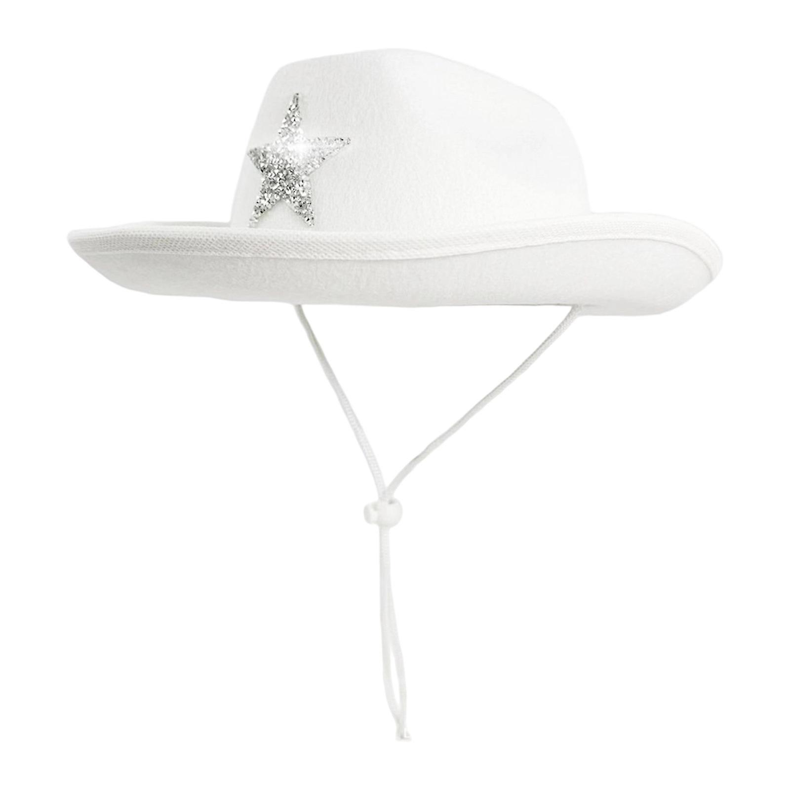 Rhinestones Star Western Cowboy Hats For Boy Girl Soft Cosplay Fedoras Hat Costume Accessory for Kids Halloween Party White