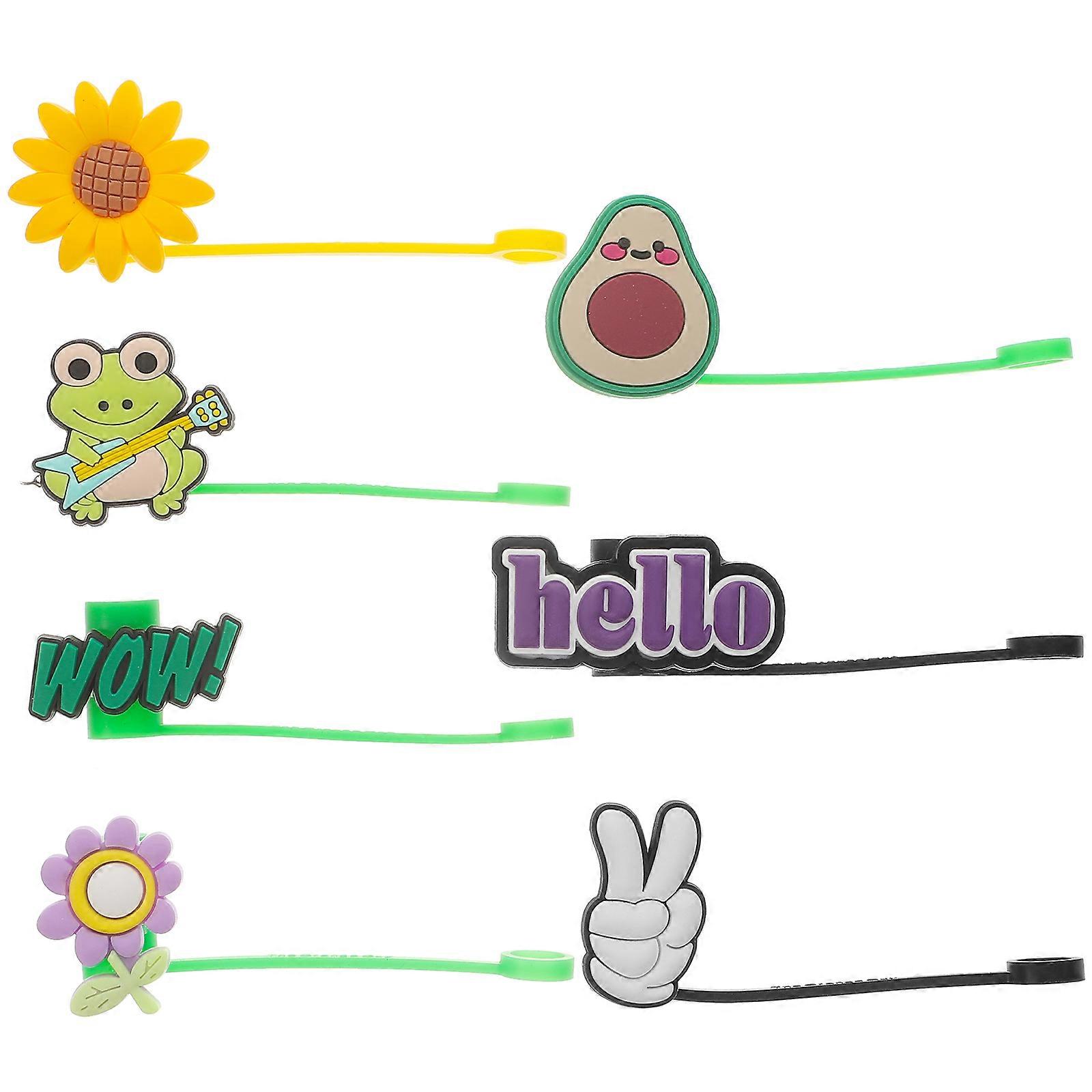 Straw Caps Reusable Silicone Straw Tips Covers Cartoon Shape Dust-Proof For Family Use 7Pcs