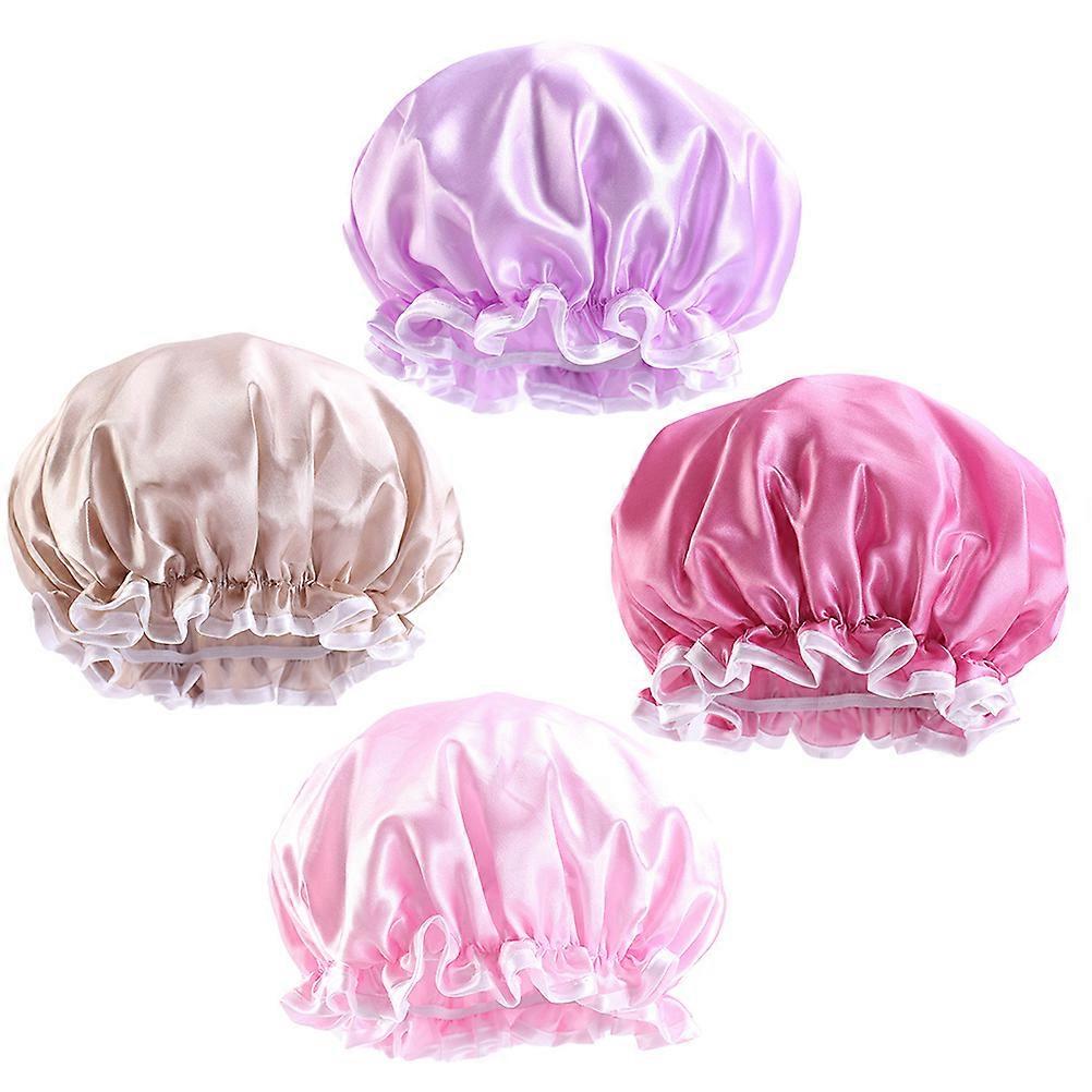 Waterproof Bathing Caps Satin Cloth Shower Caps for Shower Use 4Pcs Set