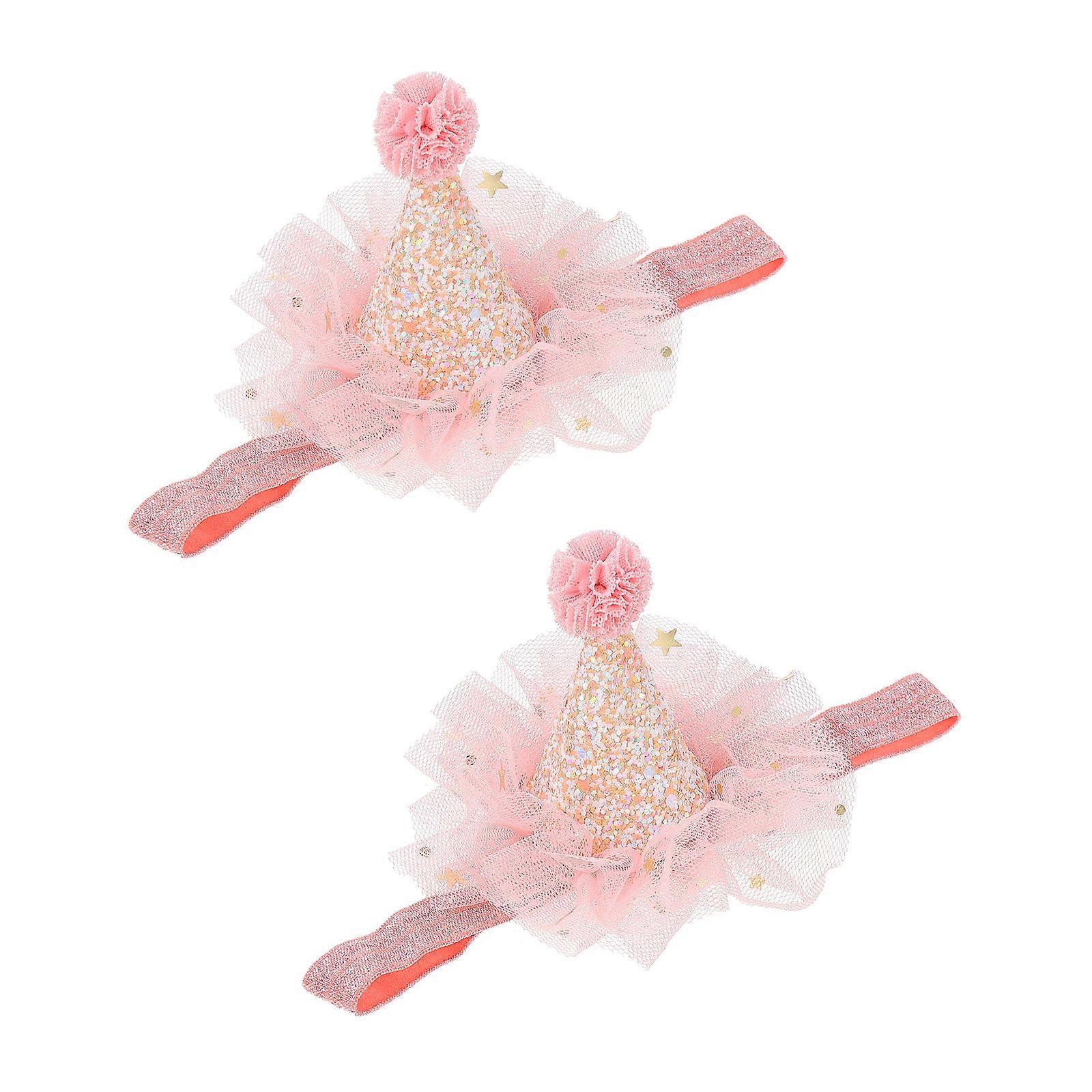 Birthday Party Hat Prop Yarn Mesh Caps for Kids 8Pcs Pink Decor