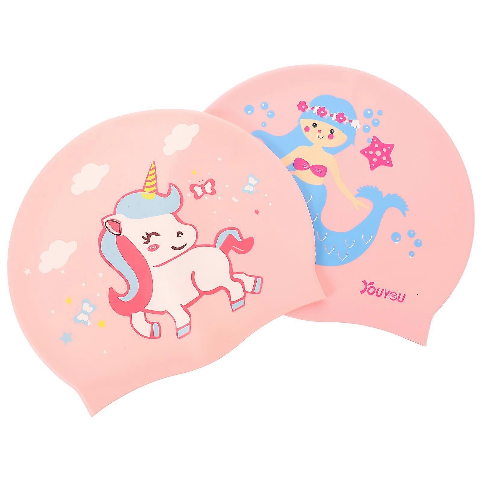Swim Caps for Kids Silicone Swimming Cap for Kids Use 2Pcs Set