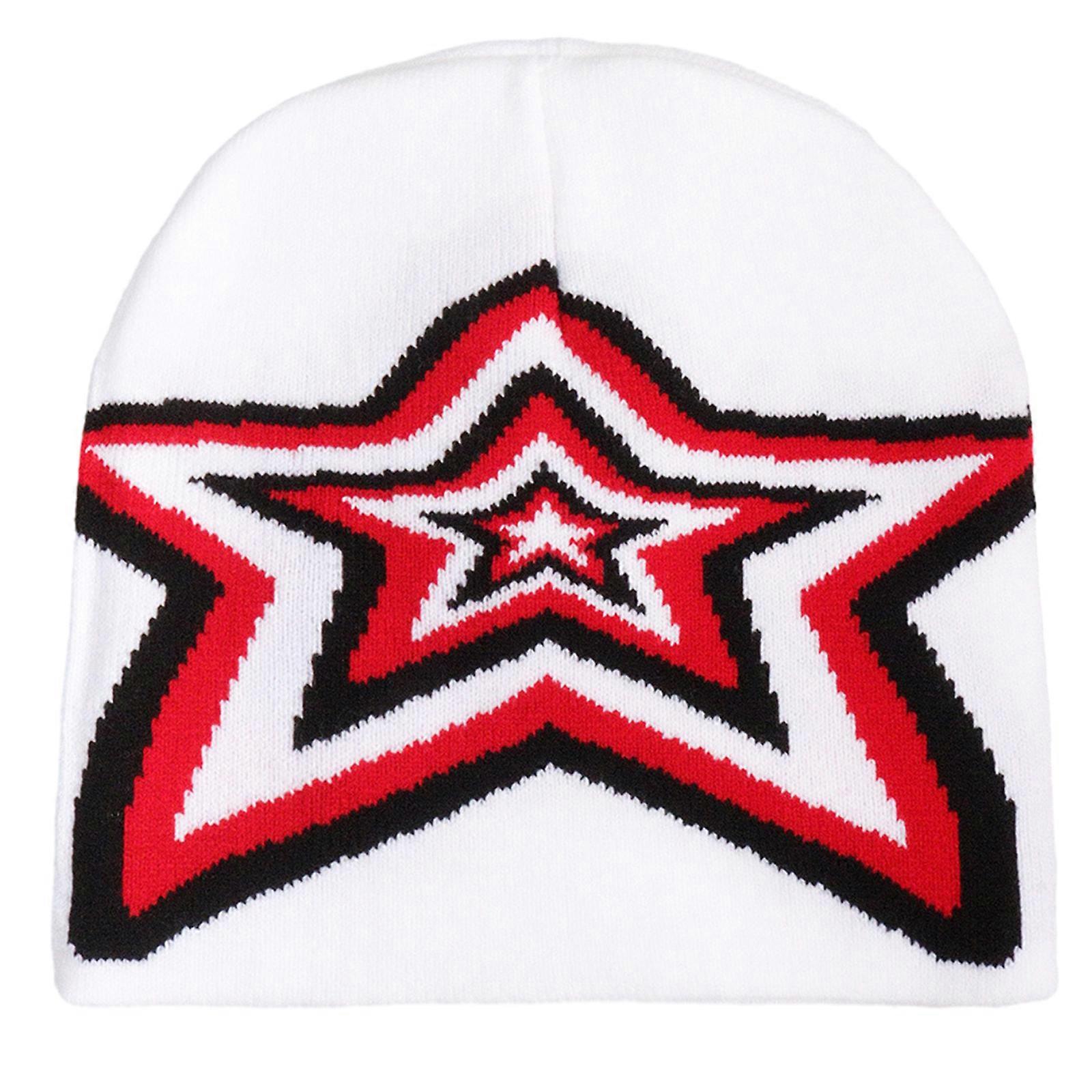 Popular Star Jacquard Beanie Hat for Female Y2K Girl Winter Autumn Hat Cool Girls Crochet Hat Soft Breathable Skull Cap White