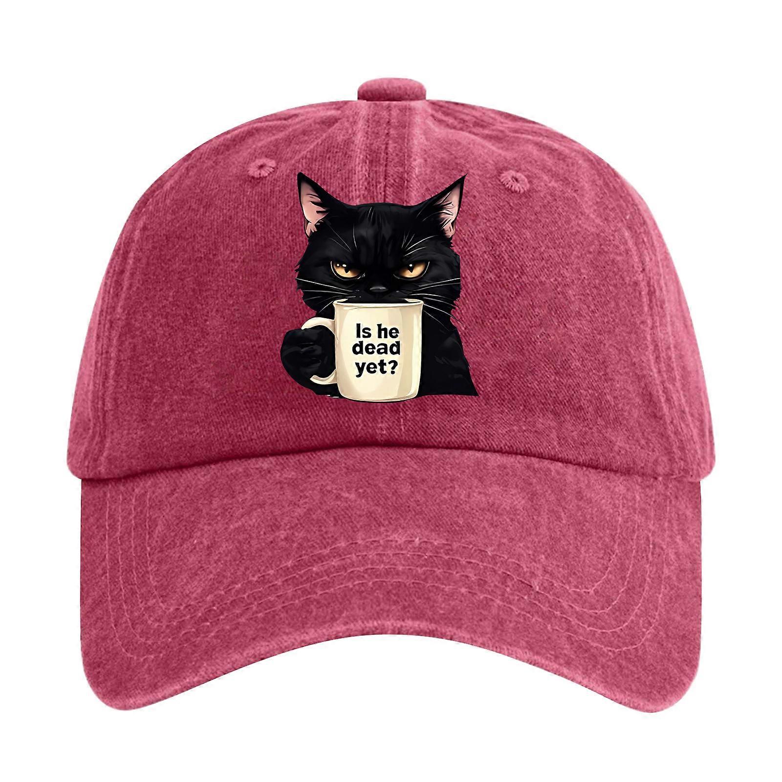 Casual Cotton Baseball Hat Sun Hat Size Lovely Kitten Pattern Streetwear Cartoon Print Red