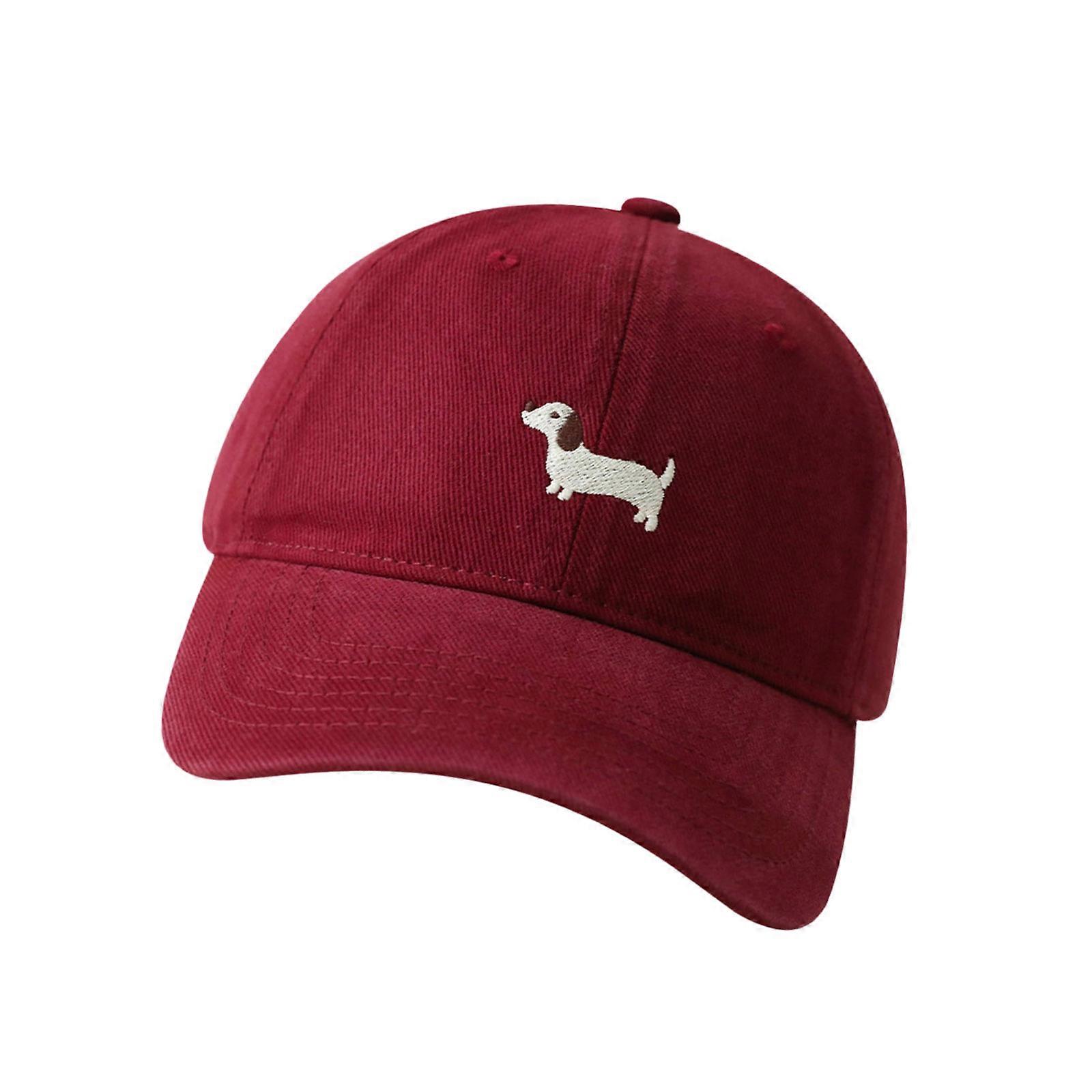 Adorable Dog Embroidery Cotton Baseball Hat With Custom Fit Strap Casual Sports Style Wine red