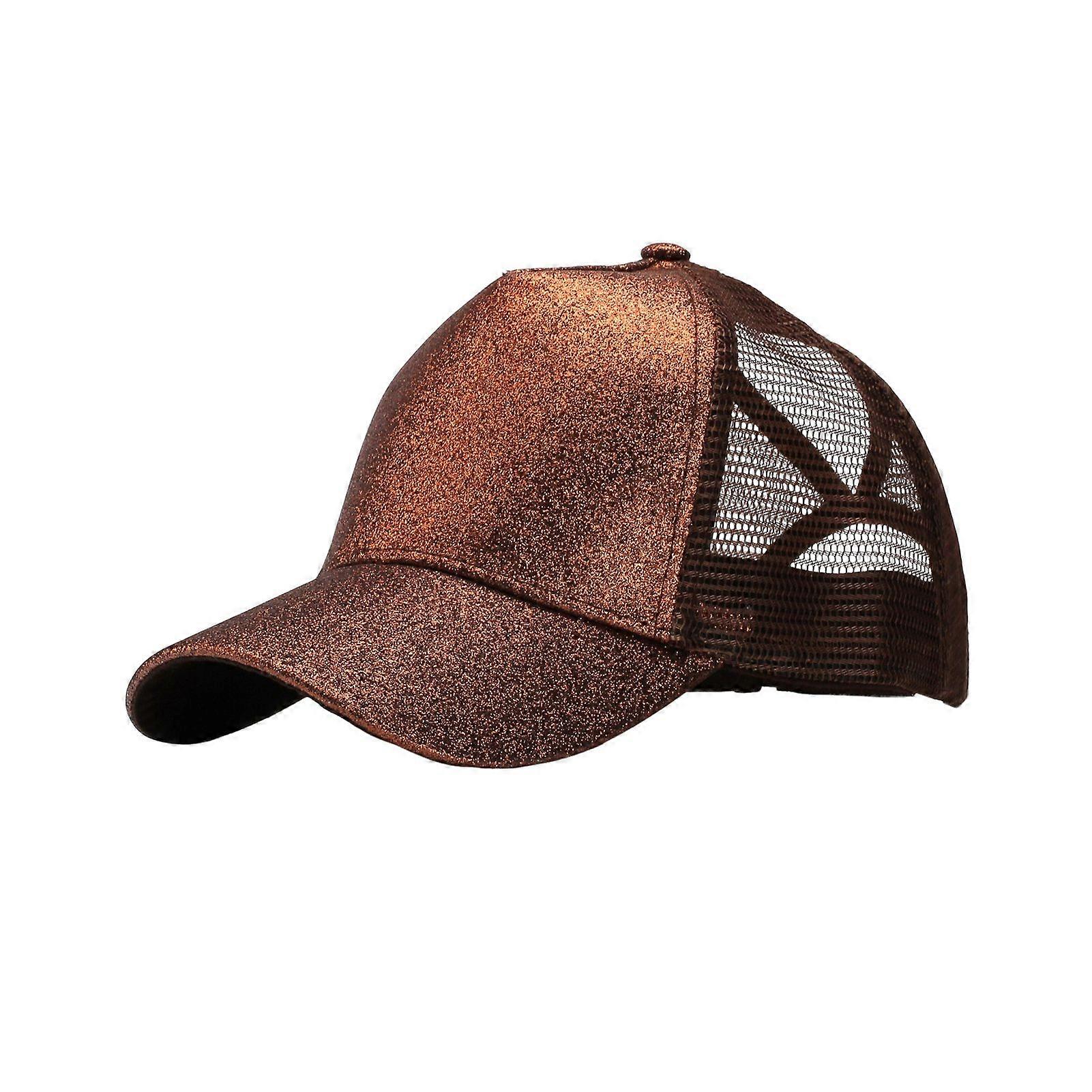 Ladies Baseball Hat Shiny Powder Hollow Mesh Long Brim Ponytail Hole Adjustable Sunscreen Anti-UV Lightweight Club Party Performance Peaked Cap