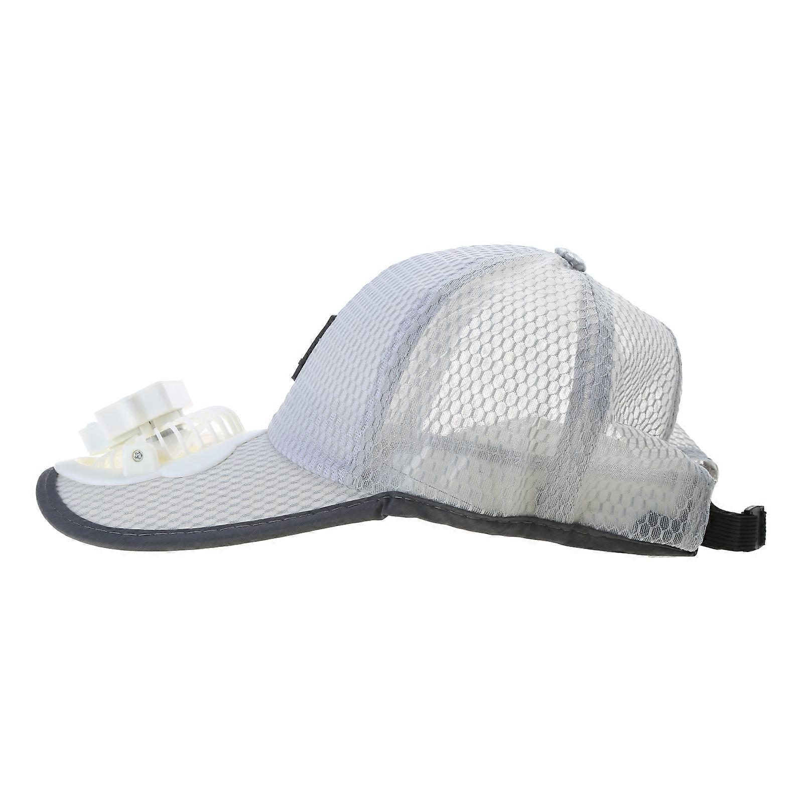 Adult Summer Sunscreen Baseball Cap with USB Rechargeable Mini Cooling Fan Breathable Mesh Adjustable for Snapback Hat Light Gray