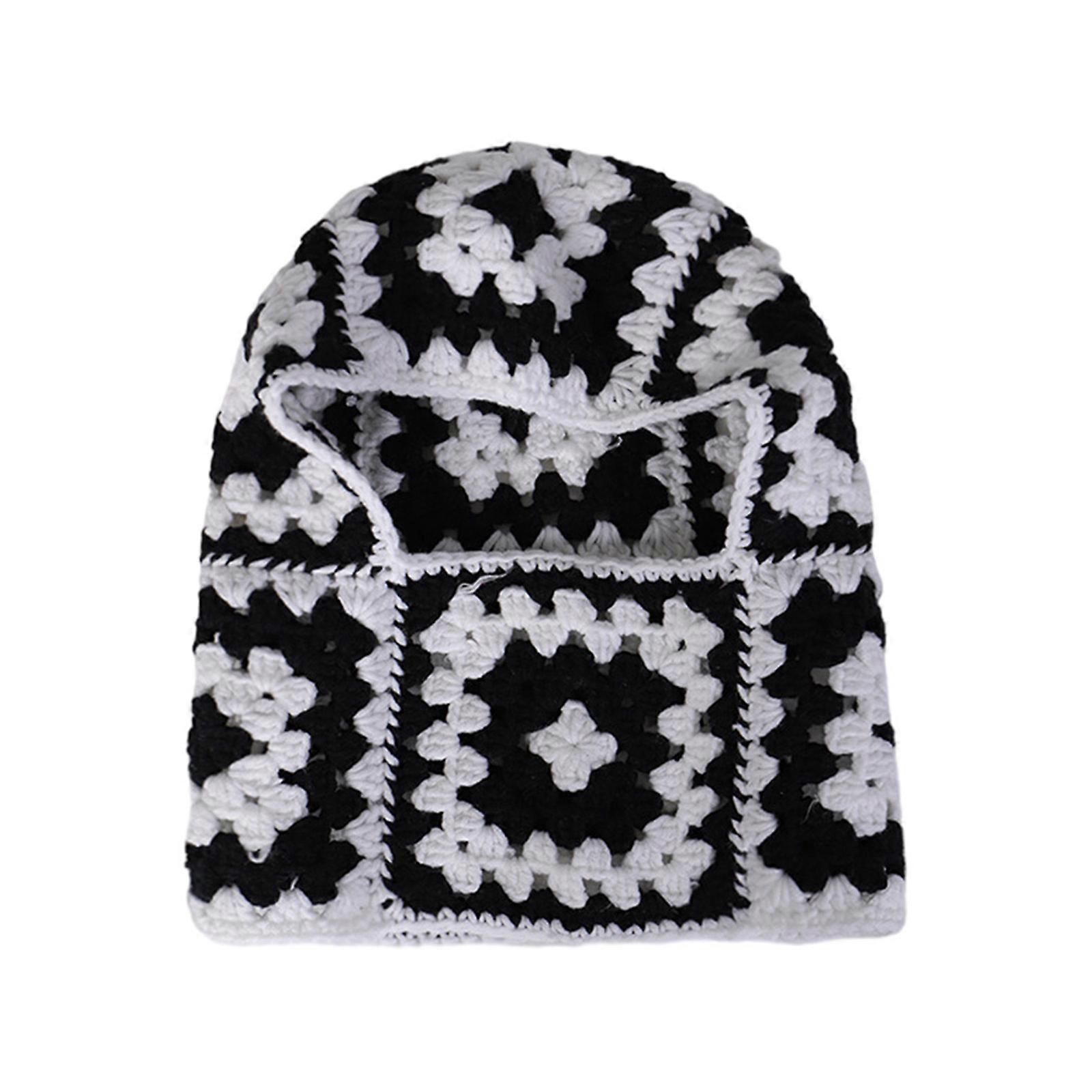 Balaclava Hat for Adult Autumn Winter Knitted Hat Winter Unique Granny-square Photography Props Knitted Neck Warmer black and white