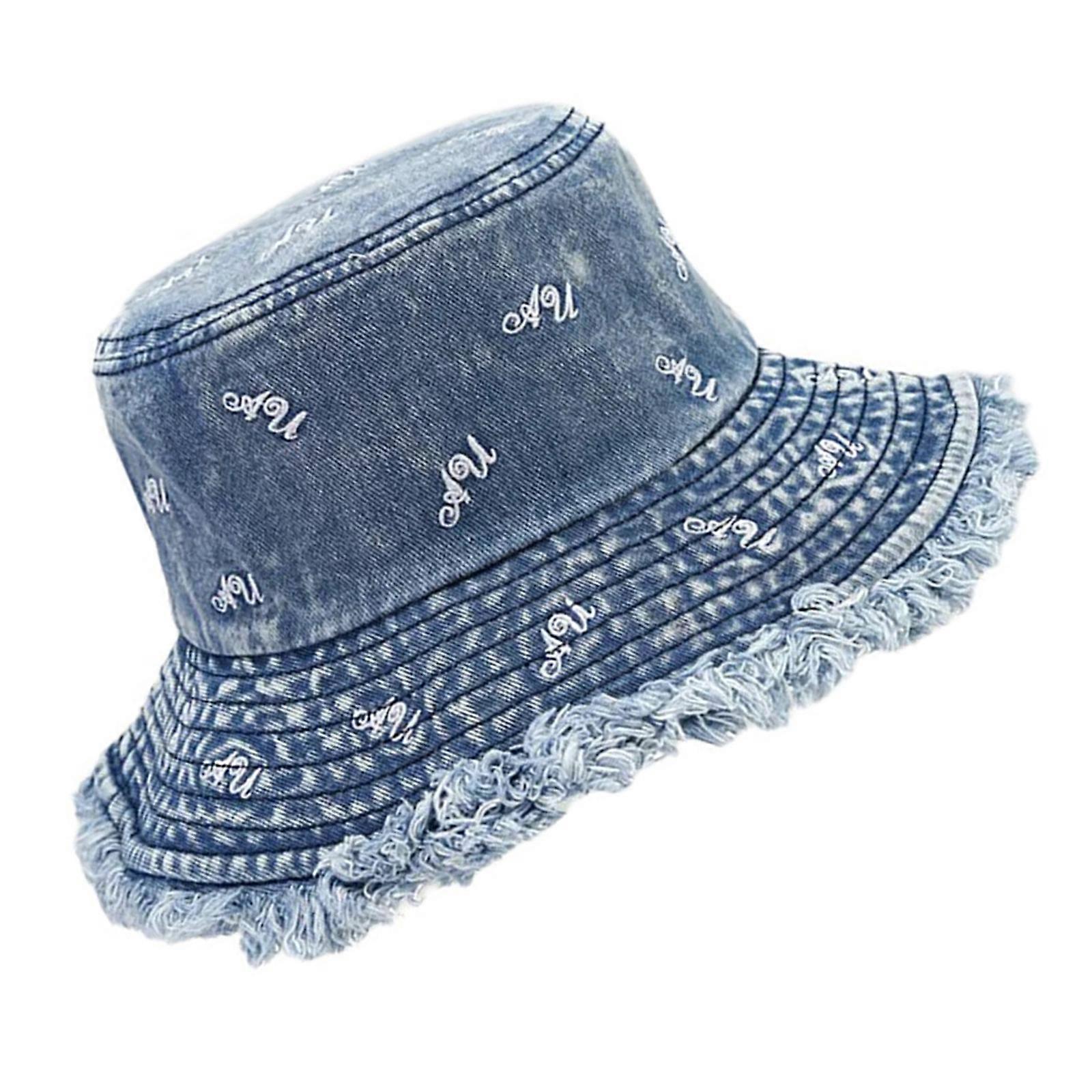 Old-fashioned Fisherman Hat Embroidery Bucket Hat For Girls Versatile Fashion Embroidery Hat Bucket Hat light blue One Size