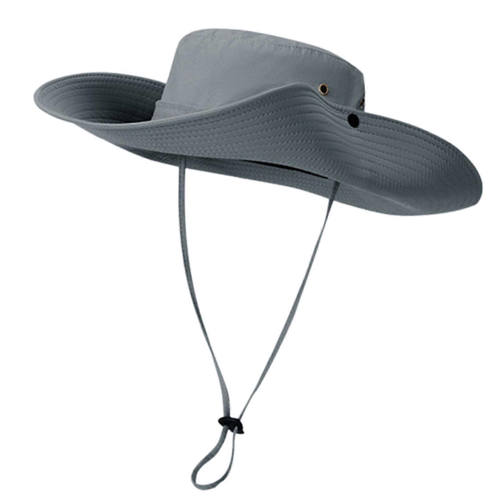 Lightweight Foldable Fisherman Hat Windproof Chin Cord Protection Beach Gardening Light gray