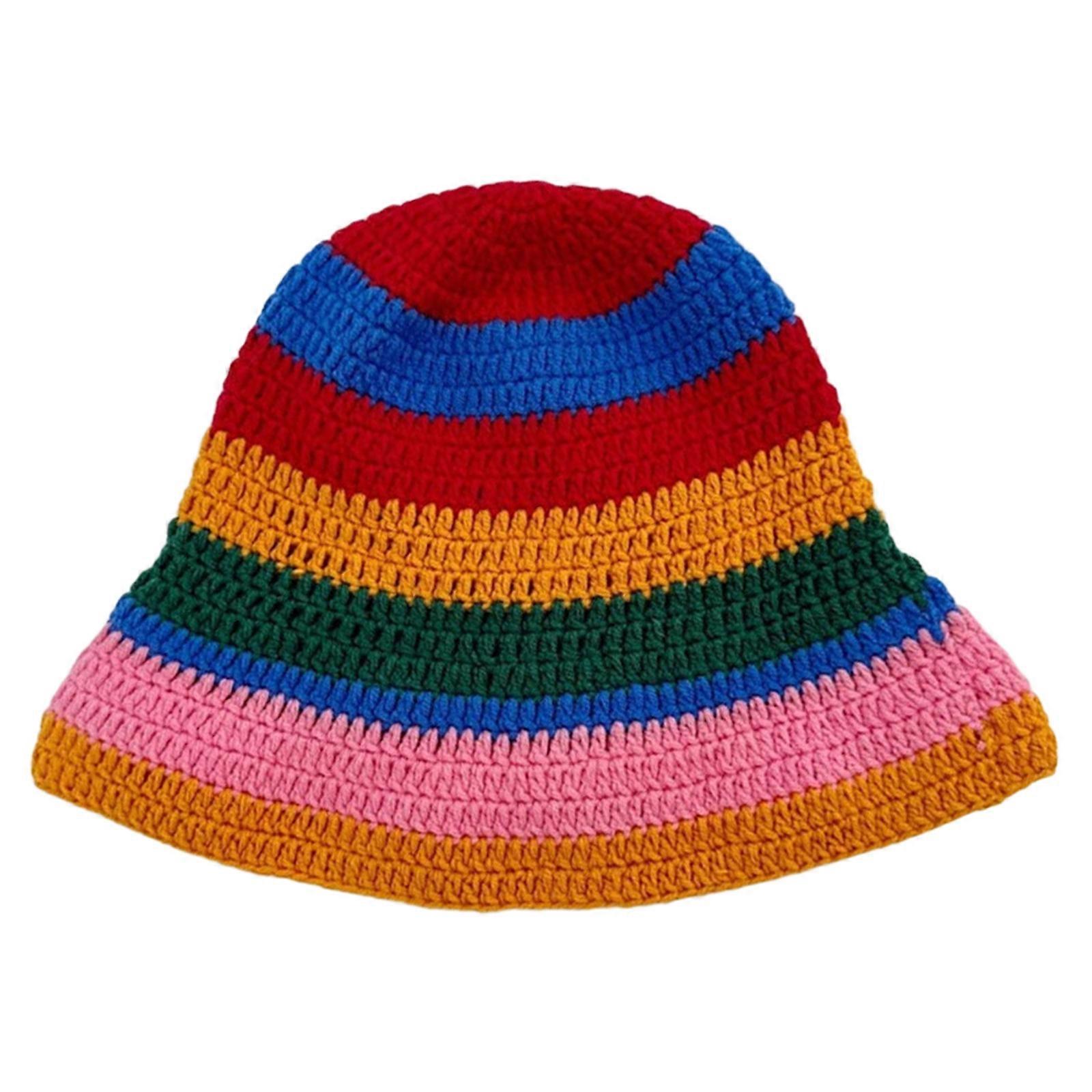 Acrylic Knit Fisherman Hat Bold Skull Colorful Striped Windproof Headwear for Music Festival Multicolor