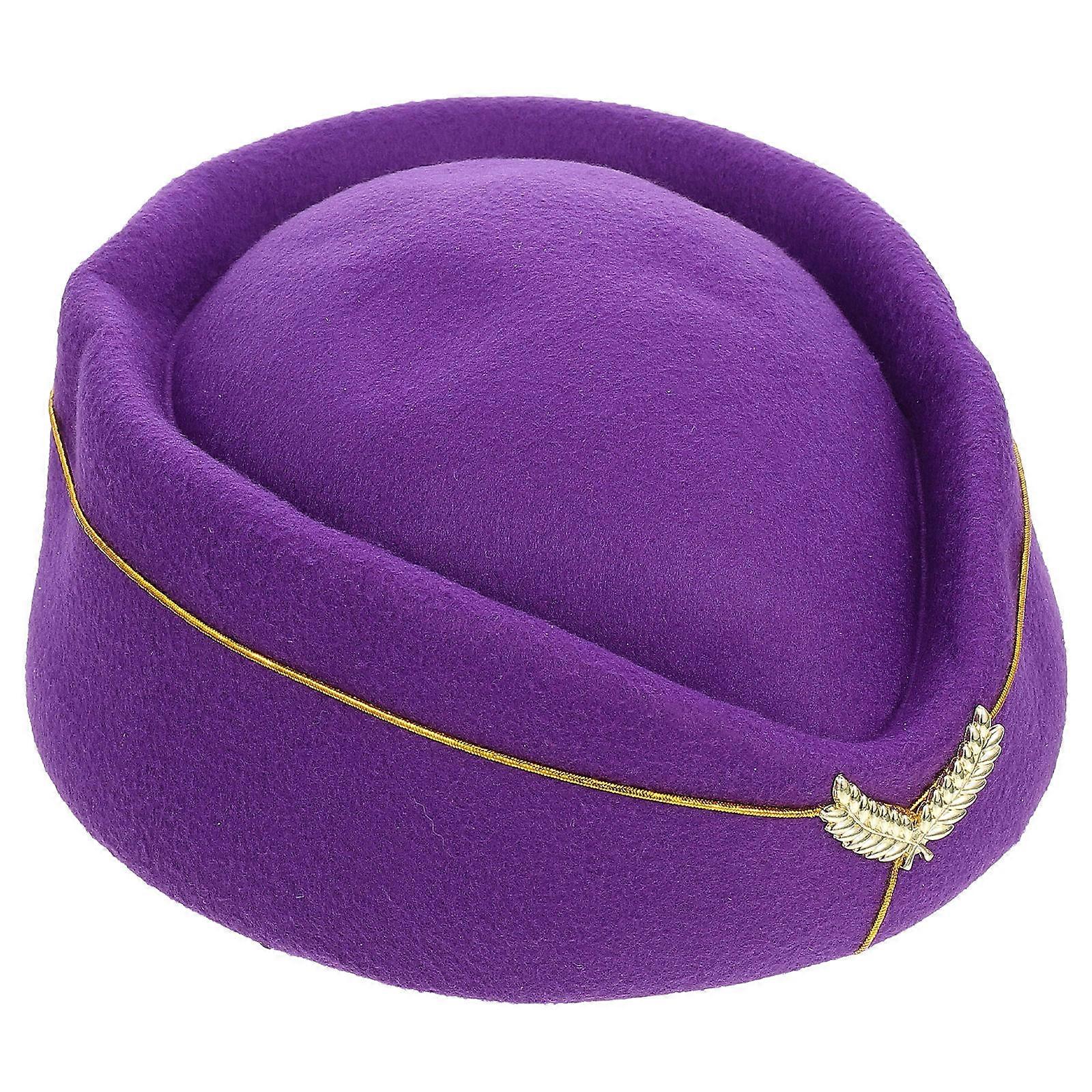 Airplane Costume Stewardess Hat Elegant Airline Stewardess Design Purple Worsted Fabric Performance Accessory 1Pcs