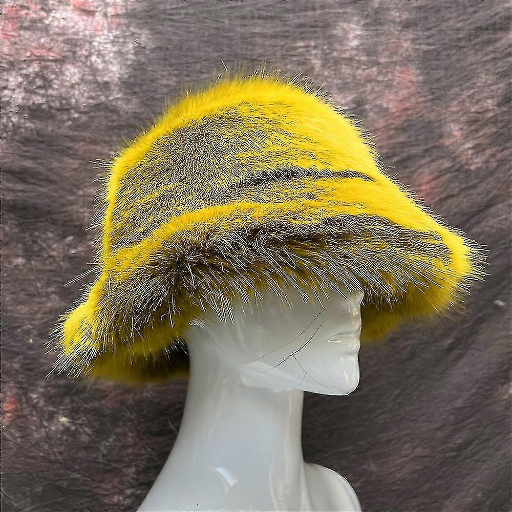 Winter Warm Fuzzy Rainbow Bucket Hat for Women Y2K Fashion Outdoor Casual Fisherman Style Festival Accessory