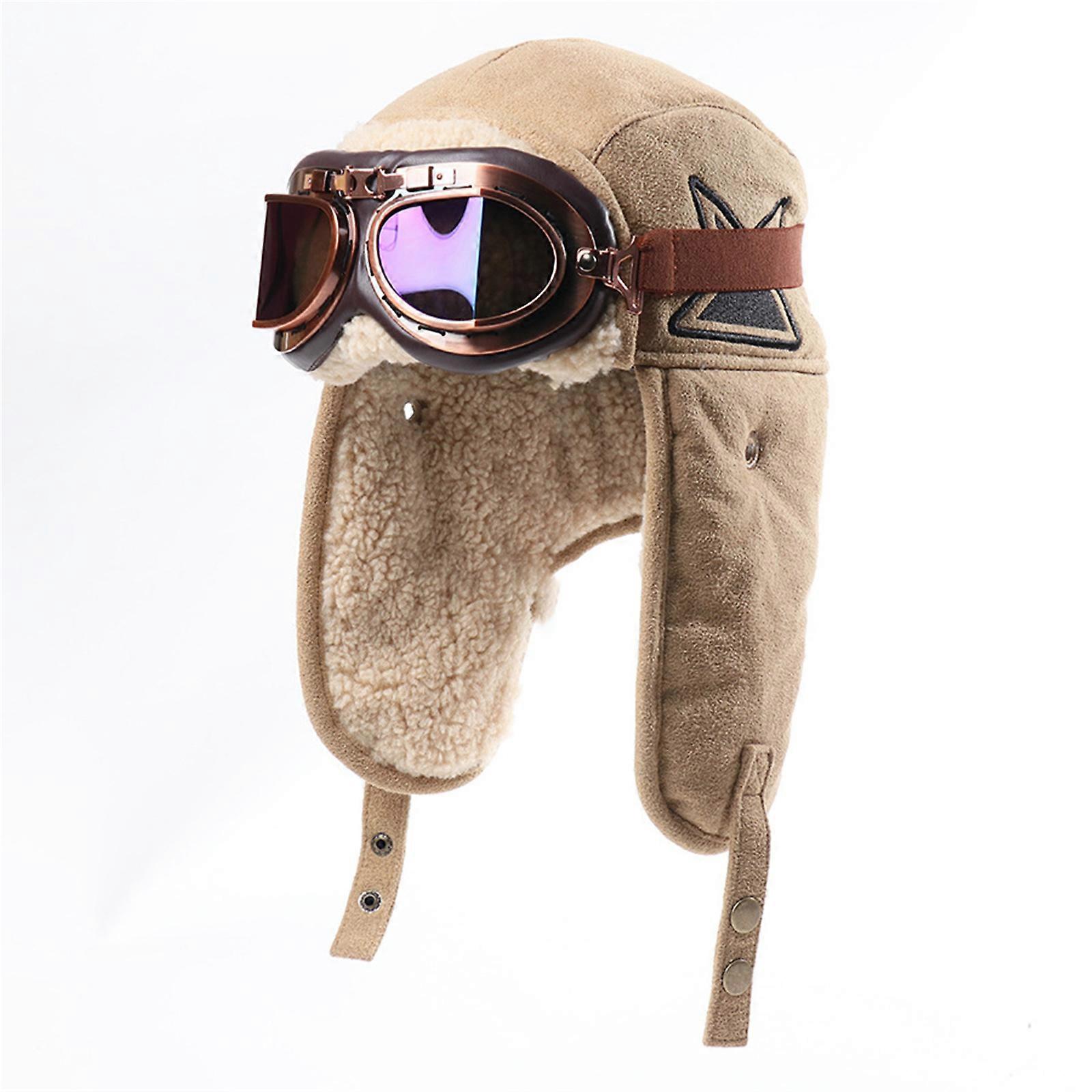 Thermals Ear Protection Hat Integrated Windproof Goggles Soft Fleece Lining Cold Weather Unisex Design For Men Women Kids Khaki