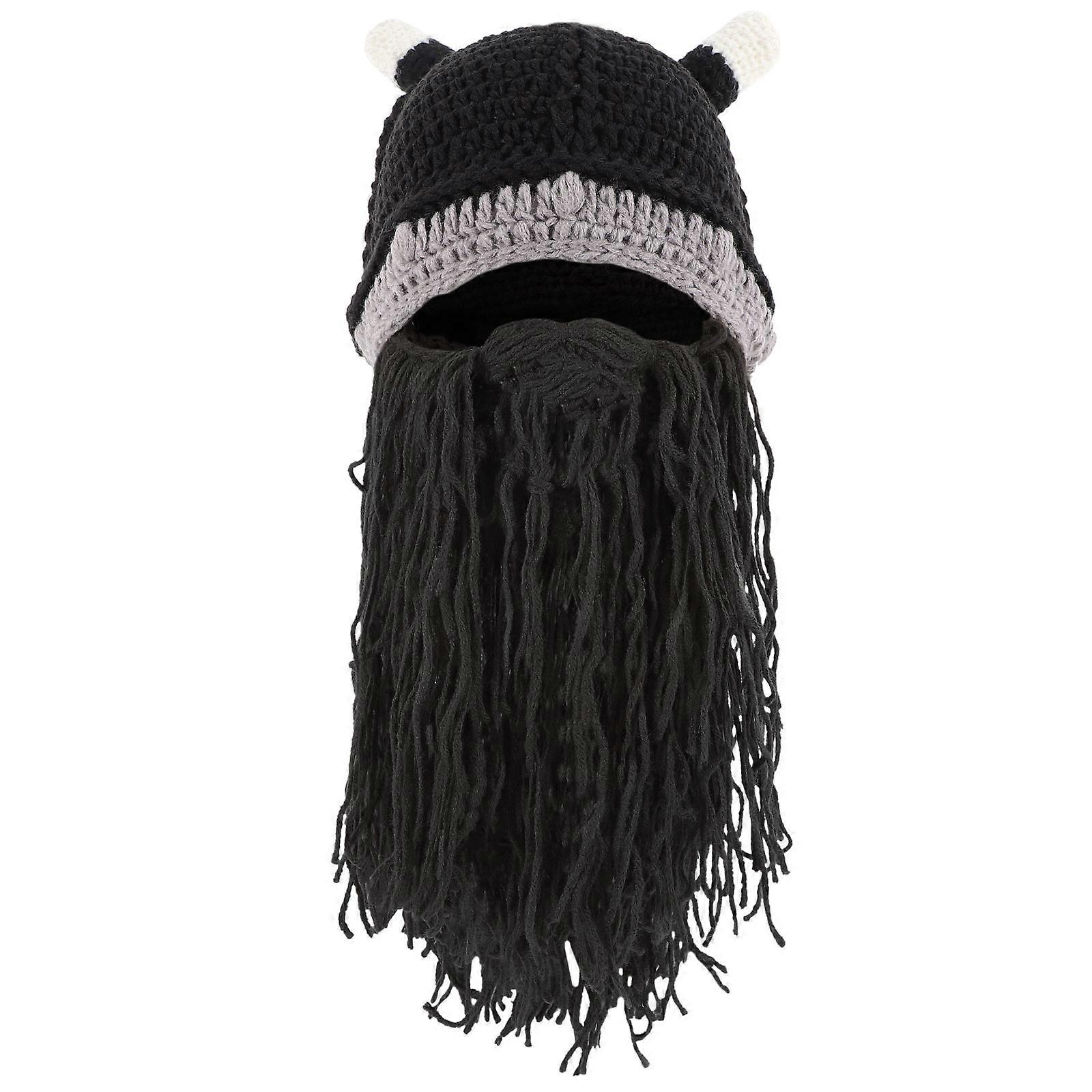 Funny Viking Hat For Adults Masquerade Winter Celebration 43X22Cm Black Short Beard 1Pack