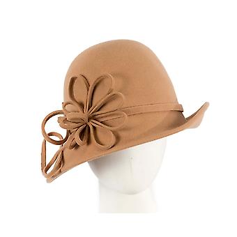 Beige felt winter hat with flower by Max Alexander J439 J439BE
