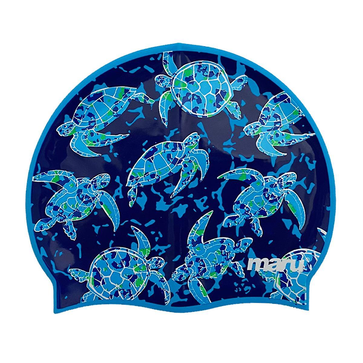 Maru Turtle Printed Silicone Swim Cap - Navy Blue - Womens
