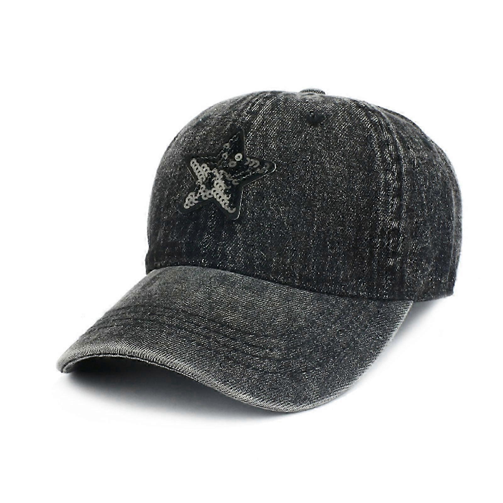 Vintage Baseball Cap Hat for Men Women Adjustable Cotton Hat for Sports Outdoor Mountain Camping Hat Star Sequins Light Blue