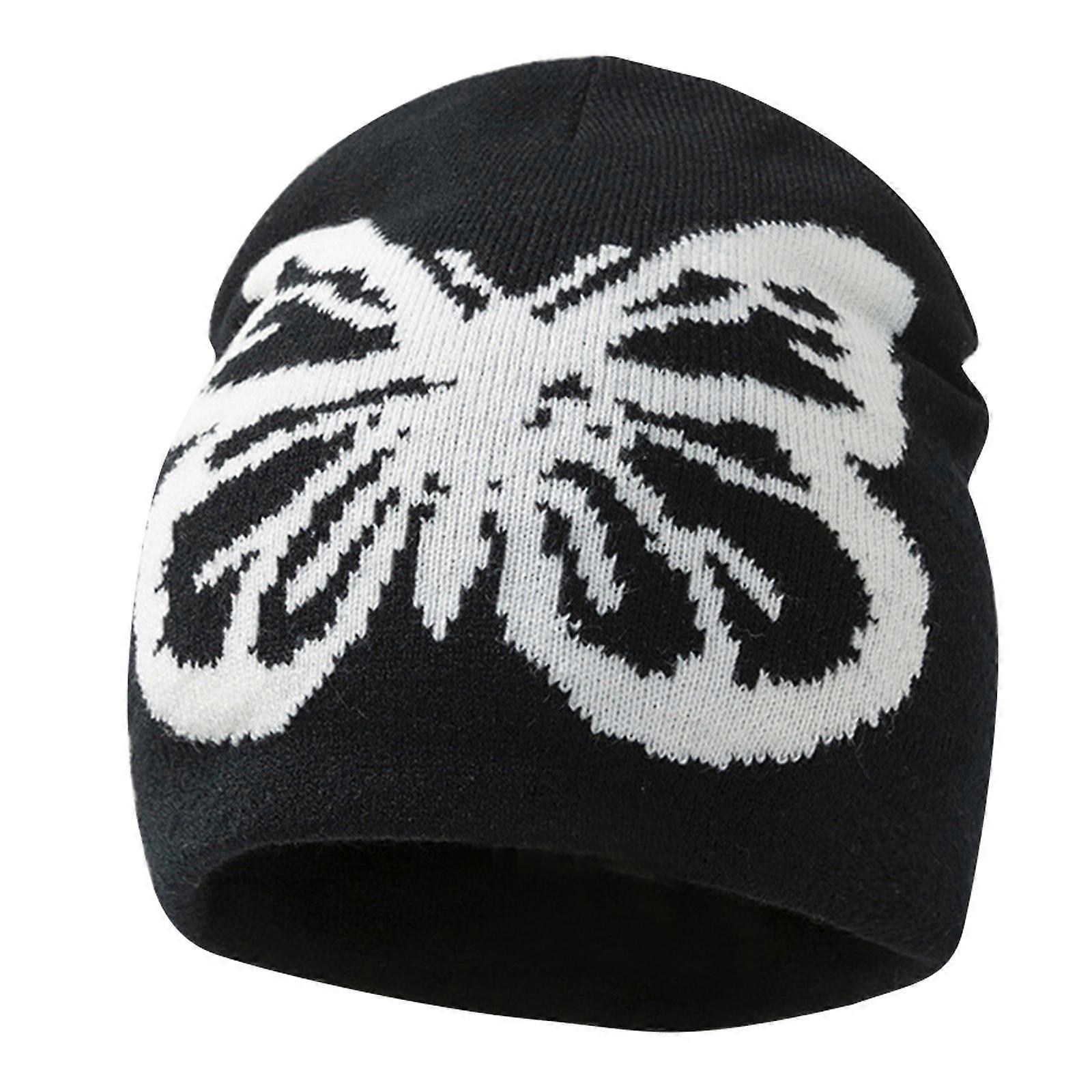 Butterfly Unisex Beanie Hat Y2K Girls Harajuku Style Photo Props Versatile Butterfly Pattern Hat for Autumn and Winter A