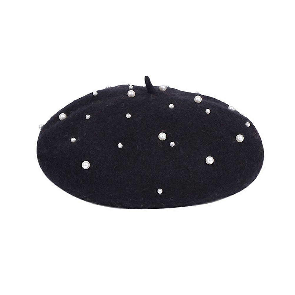 Wool Pearl Girl Beret Hat Winter Beret Hat Sweet Warm Beret Hat Pretty Beret Hat (Black)
